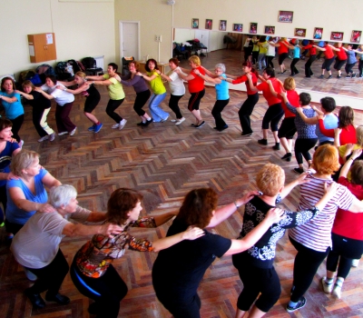 Танцы и фитнес на Оболони, да и в Киеве в целом, ориентированы преимущественно на молодежь. Особенность нашего клуба в том, что он создан только для тех, кому за 60 (в т.ч. для пенсионеров) , кому за 70 и старше. Мы не принимаем молодежь и мужчин, чтобы наши женщины чувствовали себя свободно – не комплексовались . У нас разработана специальная гимнастика для пожилых и танцы для пожилых, в т. ч. для полных.